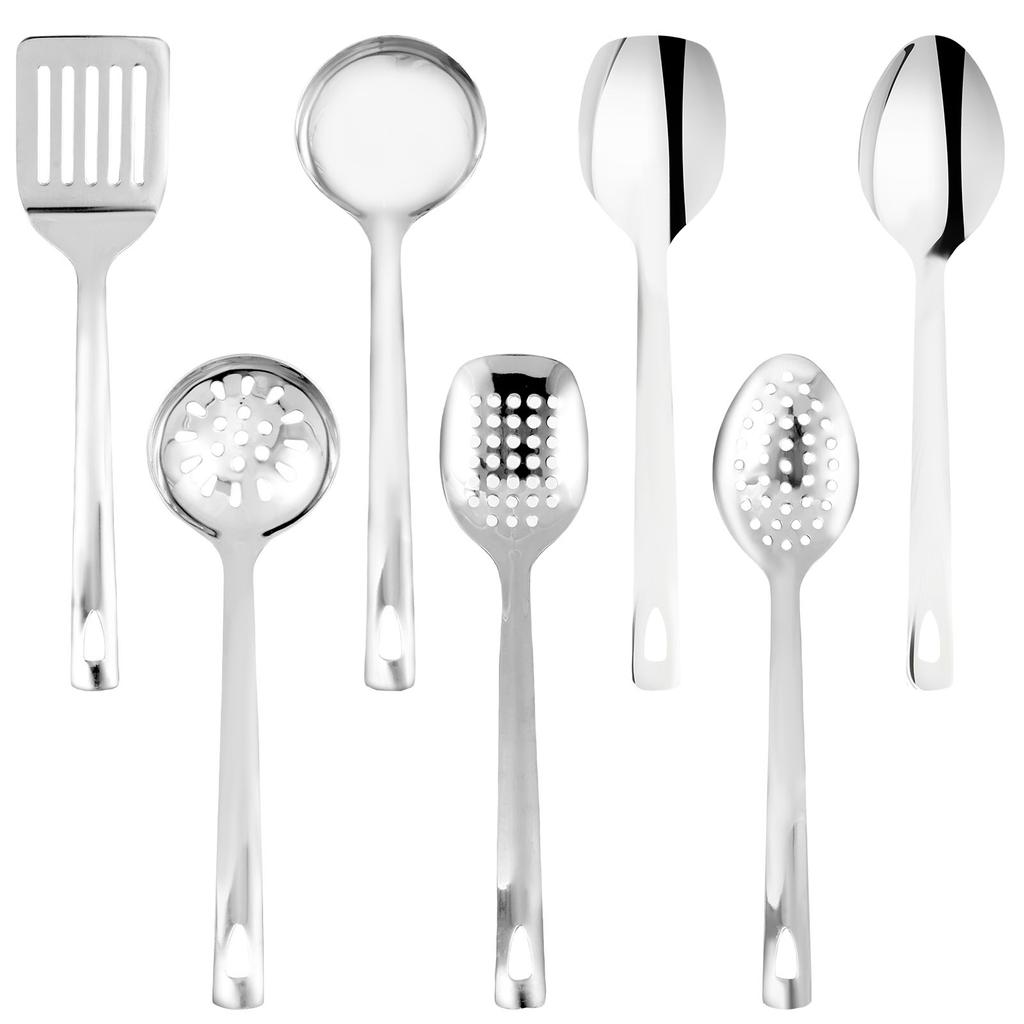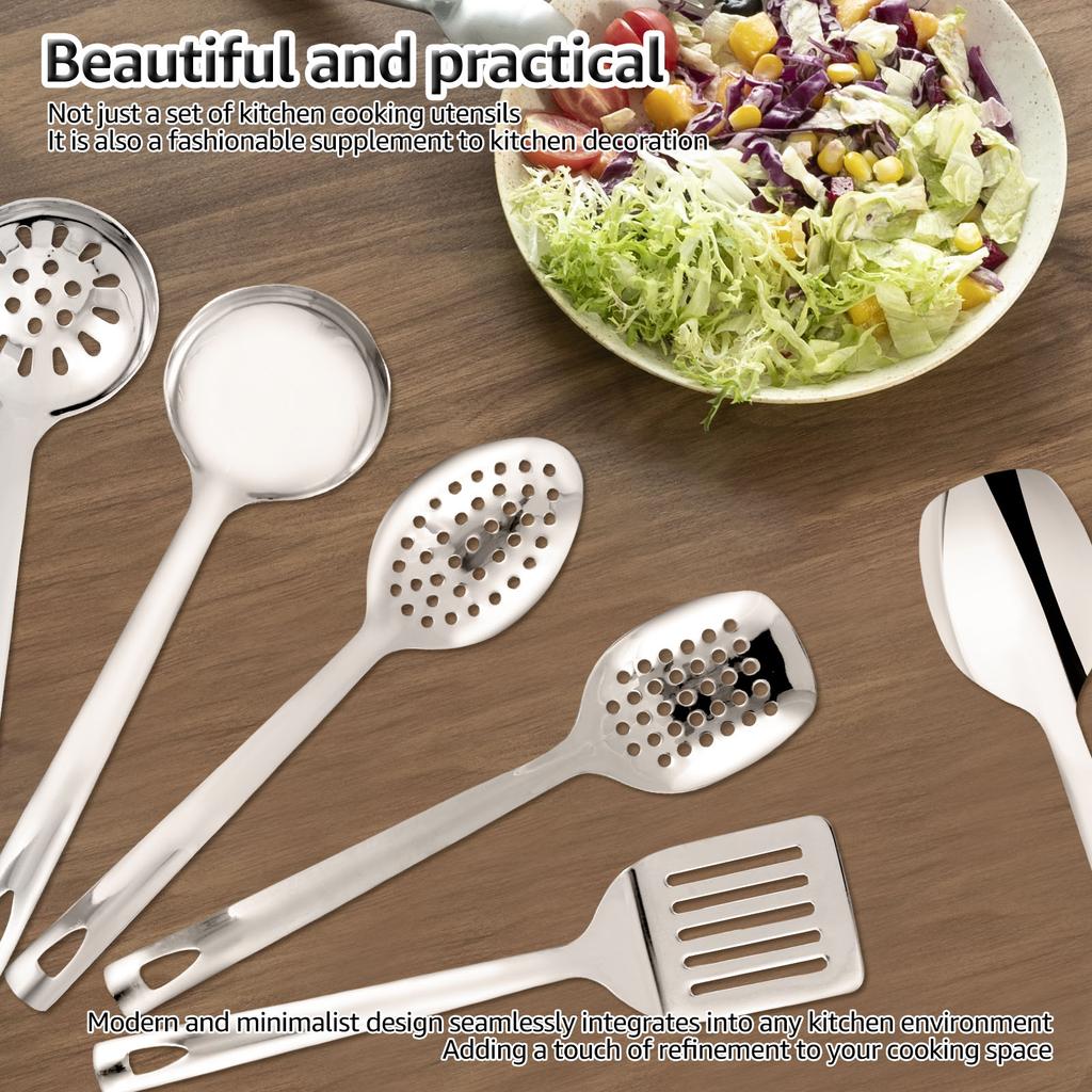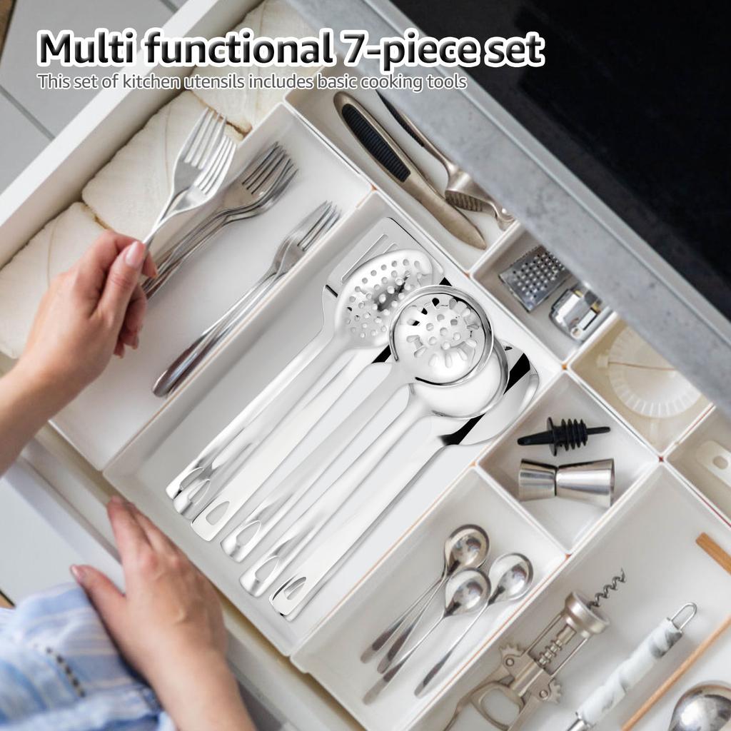 Набор из 7 предметов кухонной утвари из нержавеющей стали, термостойкий набор кухонной утвари, набор лопаток и половника для супа с эргономичной ручкой