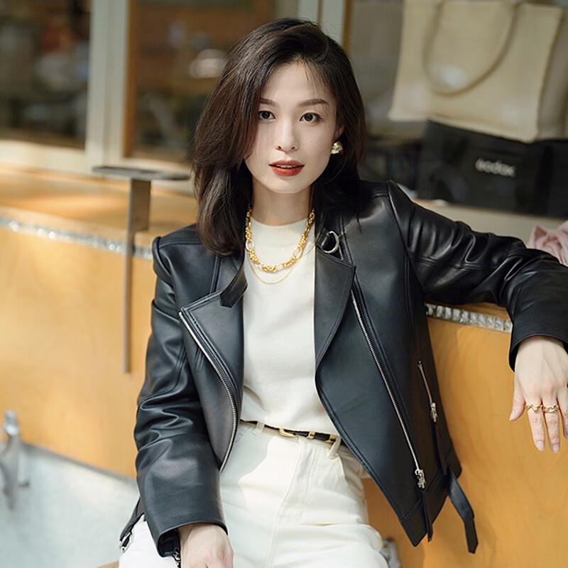 Kaiser Женская классическая двубортная кожаная куртка из овчины
