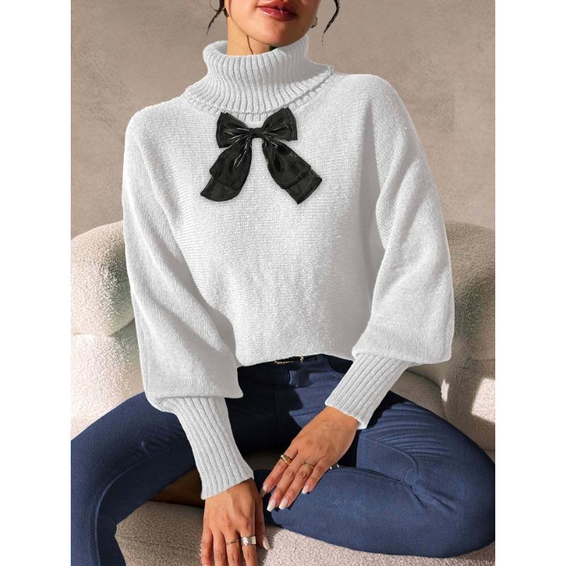 2025 Новые осенне-зимние женские топы кружевной бант водолазка пуловер свитер
