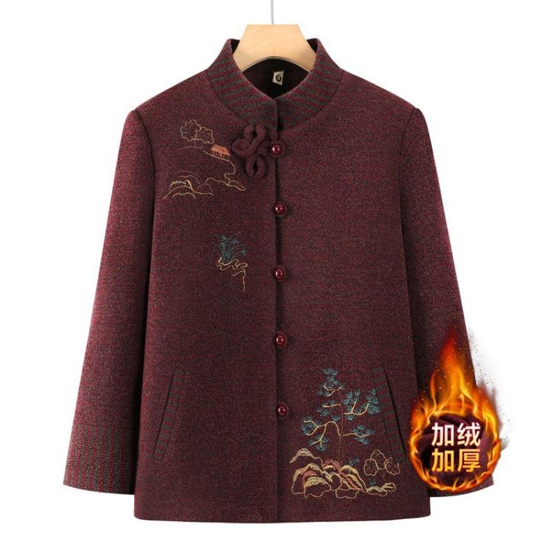 Мужское шерстяное пальто средней длины на весну и осень, одежда бабушки Тан, осенне-зимний бархатный топ для пожилой женщины, одежда для мамы, женская