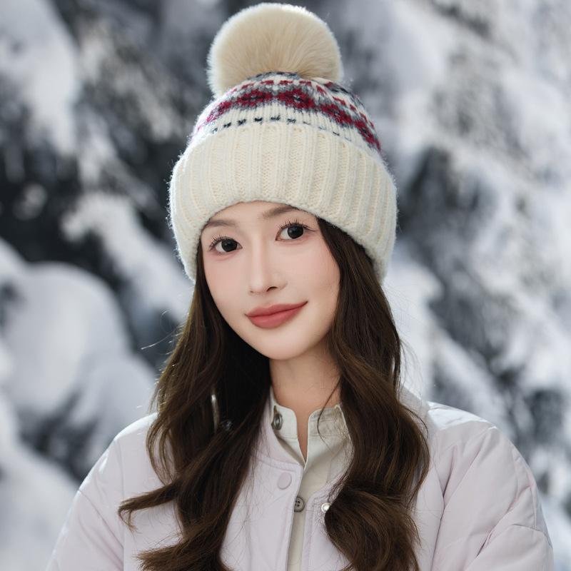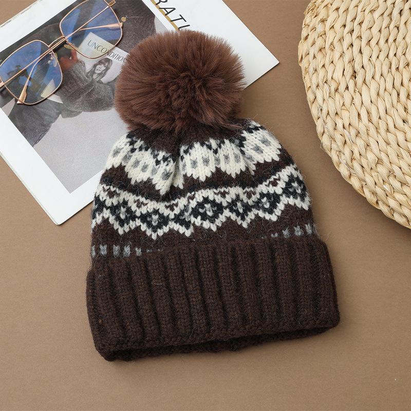 Зимняя Ретро Жаккардовая Этническая Ветрозащитная Теплая Бархатная Утепленная Защищающая от Холода Вязаная Шапка Шапка для Катания на Открытом Воздухе Шапка с Защитой Ушей