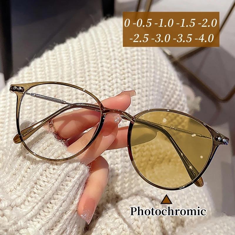 Женские модные фотохромные близорукие очки с круглой оправой, очки унисекс с минусом диоптрий, очки по рецепту -0,5 1,0 -1,5 до -6,0