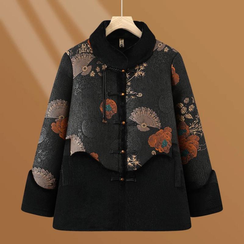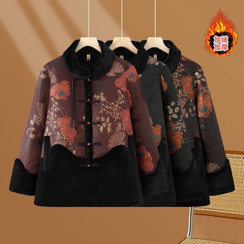 Зимнее шерстяное пальто с мехом, цельнокрое, для пожилой женщины, 0 лет, толстая одежда