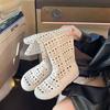 - 5/10 пар женских тонких носков средней длины из ледяного шелка, летние прохладные черно-белые носки, носки из ледяного ворса, женские повседневные носки