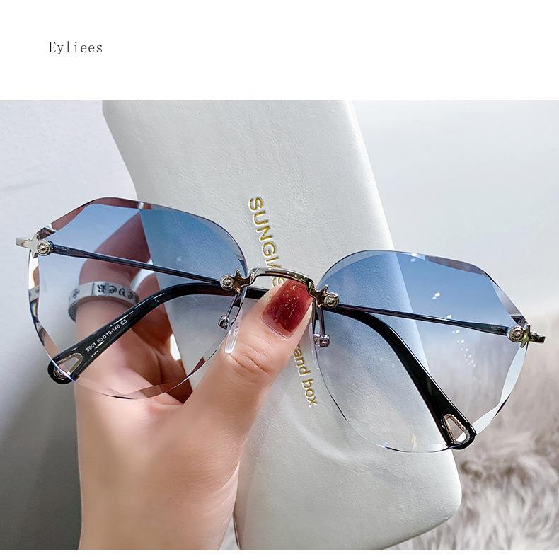 Женские безободковые солнцезащитные очки, ретро металлические солнцезащитные очки с защитой от УФ-лучей, новая модная оправа с линзами с огранкой, солнцезащитные очки UV400, gafas
