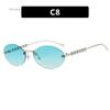 Новые безободковые овальные женские солнцезащитные очки Великолепные жемчужные солнцезащитные очки Европейский и американский трендовый хай-энд