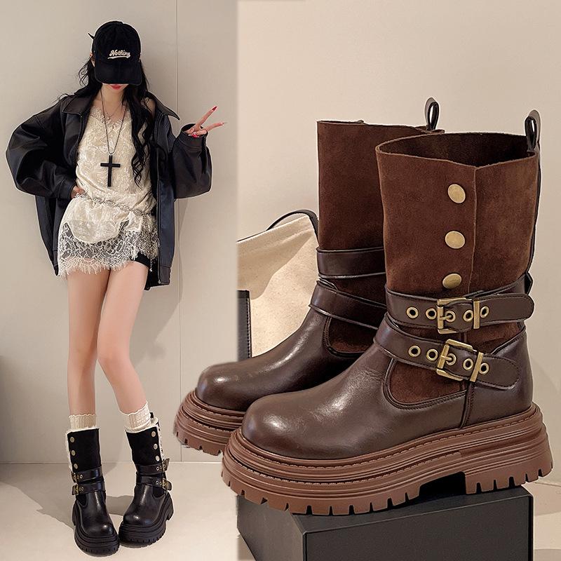 Короткие коричневые ботинки Мартин для женщин 2025 новая осень и зима ретро Майяр два варианта носки на толстой подошве увеличивающие рост универсальные короткие ботинки