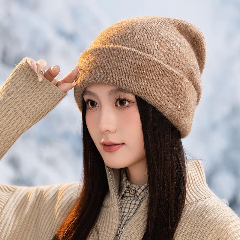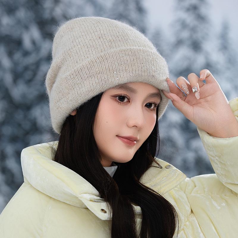 Зимняя теплая флисовая утолщенная шапка с горячими бриллиантами, защита ушей, шапка-пуловер, модная вязаная шапка