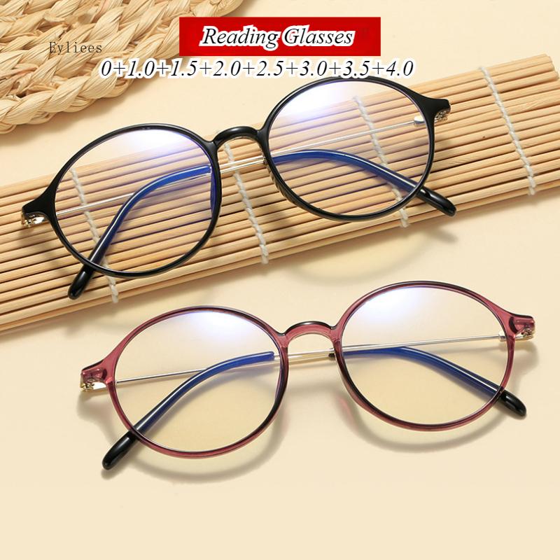 Круглые очки для чтения для женщин, очки для пресбиопии с защитой от синего света для мужчин, компьютерные рецептурные очки с диоптриями +0.0~+4.0