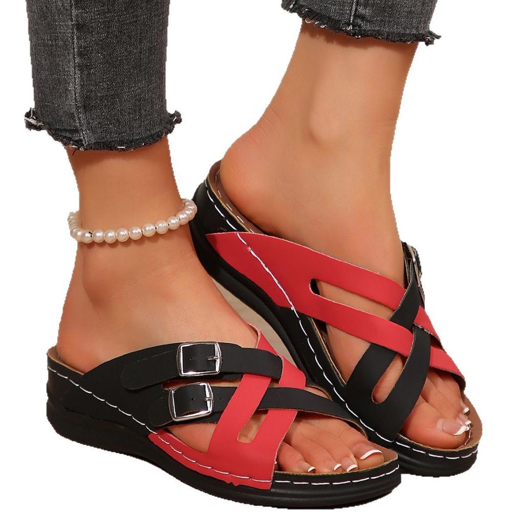 Внешняя торговля большой размер женская обувь танкетка шлепанцы женские толстая подошва увеличивающая рост верхняя одежда сандалии сочетание цветов новая пляжная обувь сандалии