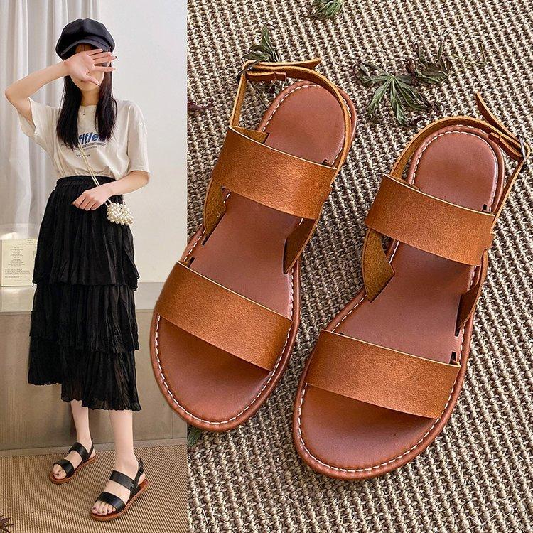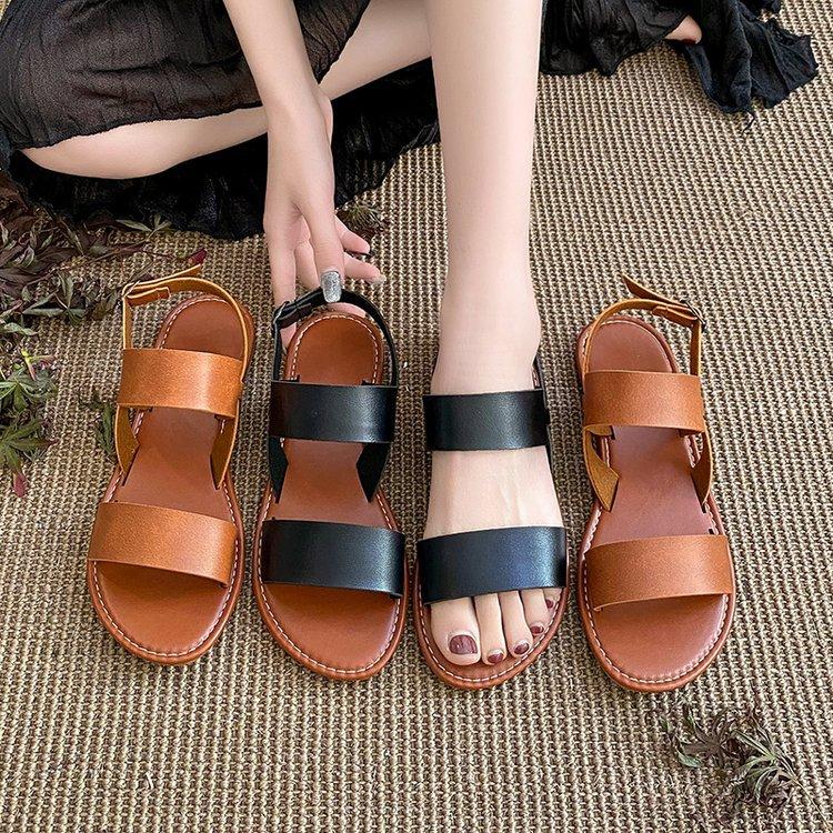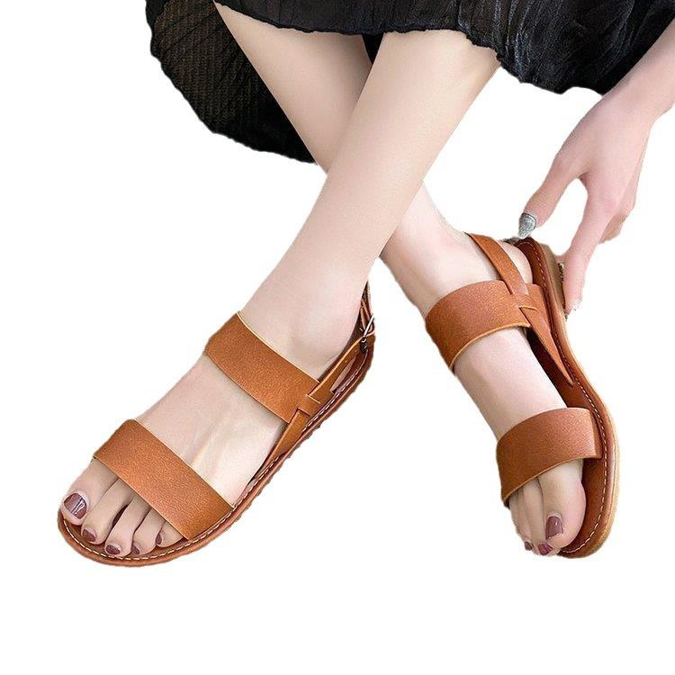 2025 внешняя торговля ретро стиль плоская подошва сандалии с пряжкой женские ремешок с пряжкой большого размера пляжные крутые шлепанцы источник wish
