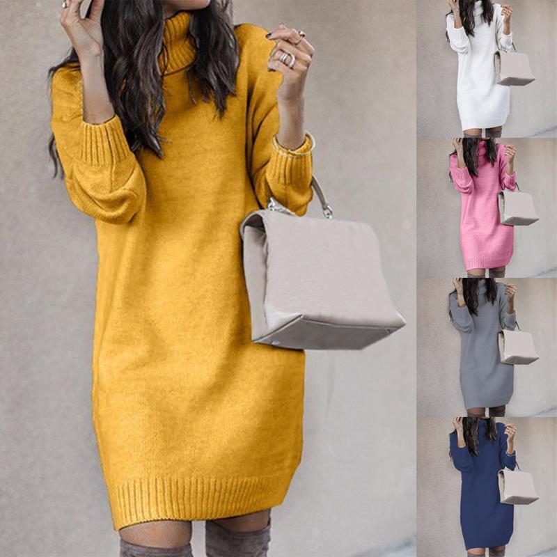 Женская повседневная туника с длинным рукавом, водолазка, вязаный пуловер, свободное платье на осень и зиму — купить товар онлайн с бесплатной доставкой по всему миру!