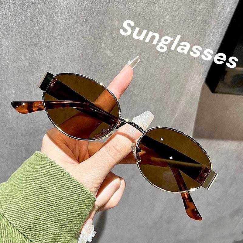 Летние новые овальные солнцезащитные очки с металлической оправой, солнцезащитные очки в ретро-стиле с небольшой оправой, дорожная одежда, простые очки с защитой от ультрафиолета