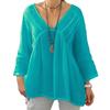 Новая женская повседневная футболка с V-образным вырезом, длинным рукавом, свободного кроя, однотонная, многоцветная — купить товар онлайн с бесплатной доставкой по всему миру!