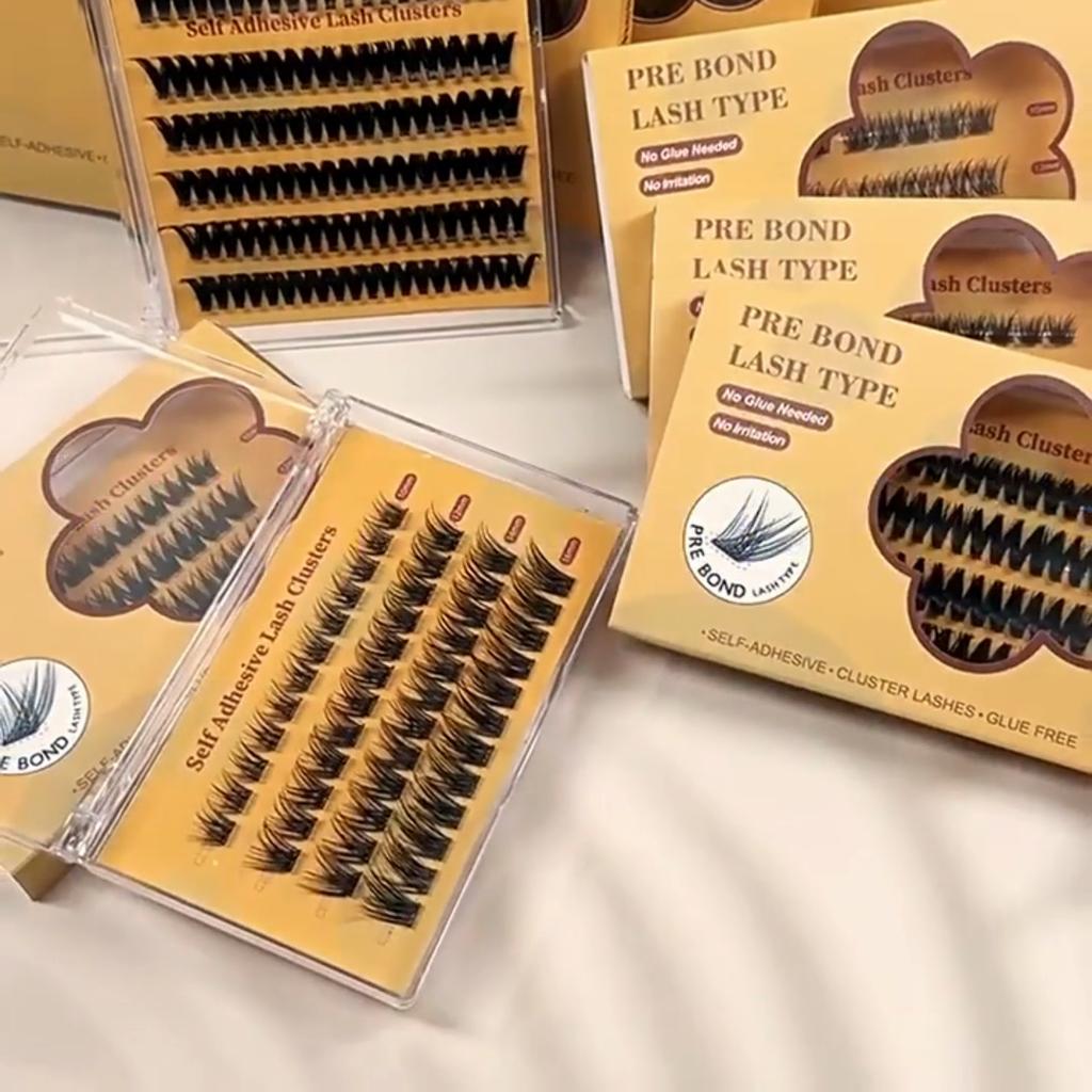 Накладные ресницы - Бесклеевые DIY сегментированные ресницы, Не содержащие формальдегида, Объемные и с европейским изгибом, Самоклеящийся макияж