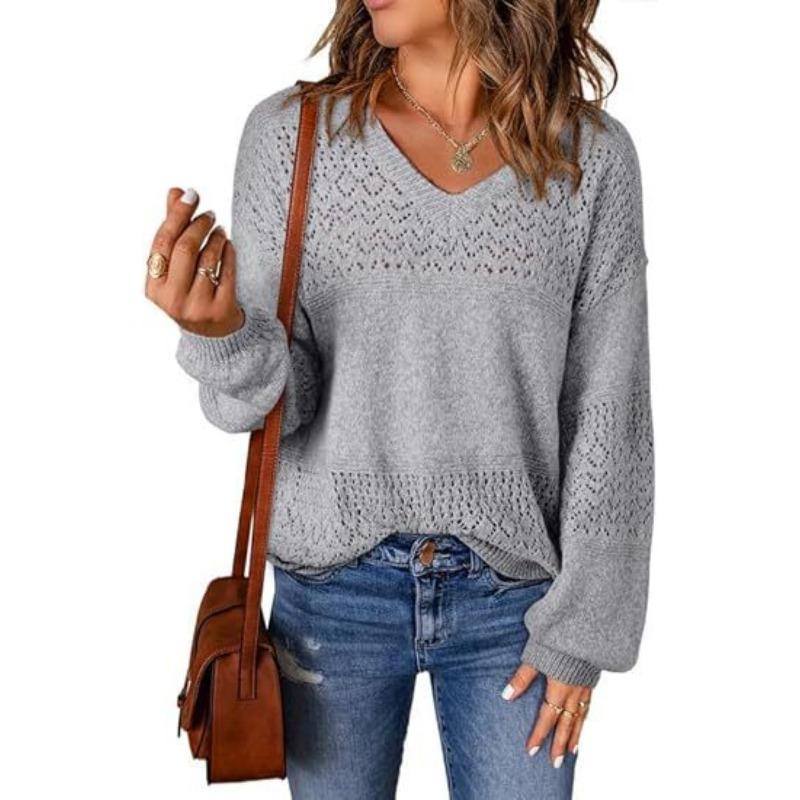 Осень и Зима Новинка Женский Универсальный Повседневный Пуловер Свитерок из Чистого Хлопка Легкий Вязаный с V-образным Вырезом и Длинными Рукавами