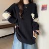 Весна Осень Новый Ленивый Стиль Модный Дизайн в Цветовой Блок Повседневный Свитер Женский Средней Длины Вязаный Топ Трендовый