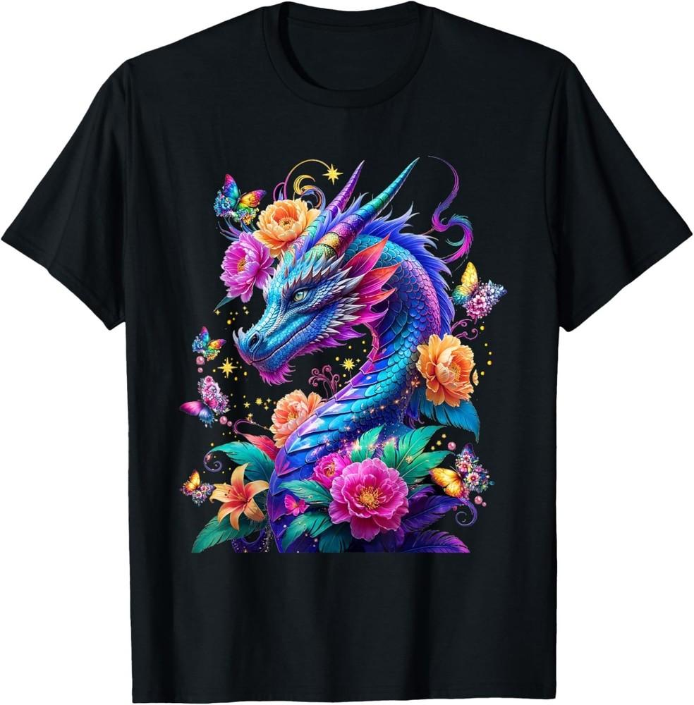 Акварельные цветы дракона Красивое искусство Красочная графическая футболка унисекс футболка