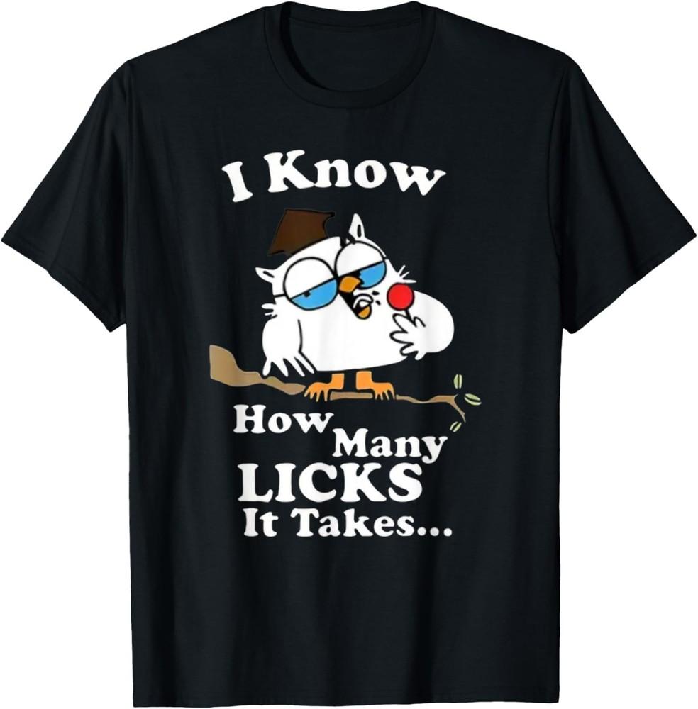 Я знаю, сколько облизываний нужно – Графическая футболка унисекс с совой и шуткой про леденец