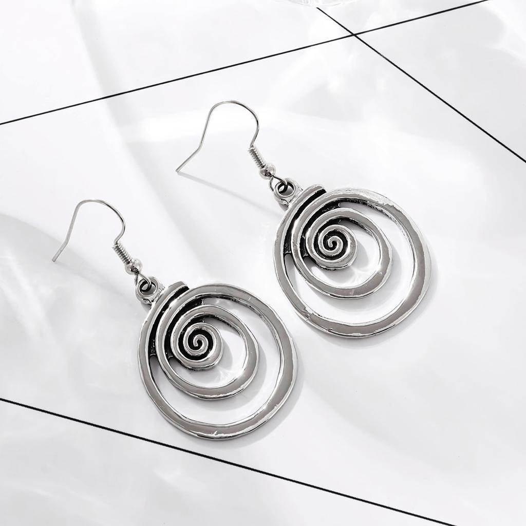 Этнические серьги-кольца из металла серебристого цвета, личность, ретро, геометрия, состаренные спиральные серьги-подвески для женщин, аксессуары