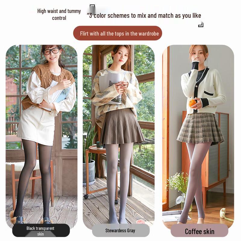 LANSWE Women's Velvet-Lined Faux Sheer Tights