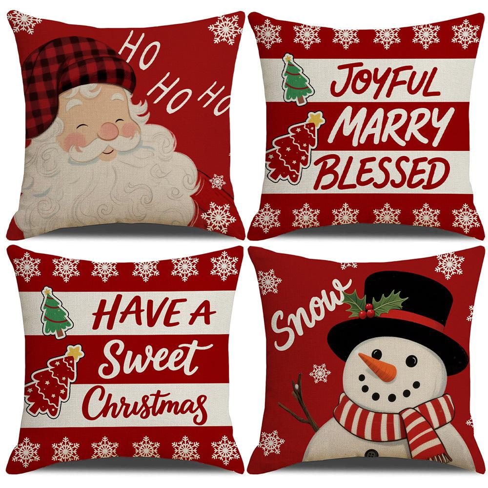 Рождественская декоративная льняная наволочка с узором Санта-Клауса и снеговика, создающая праздничную атмосферу, украшение для дома, наволочка