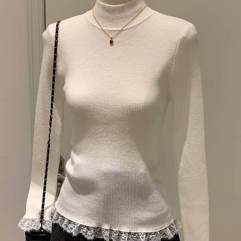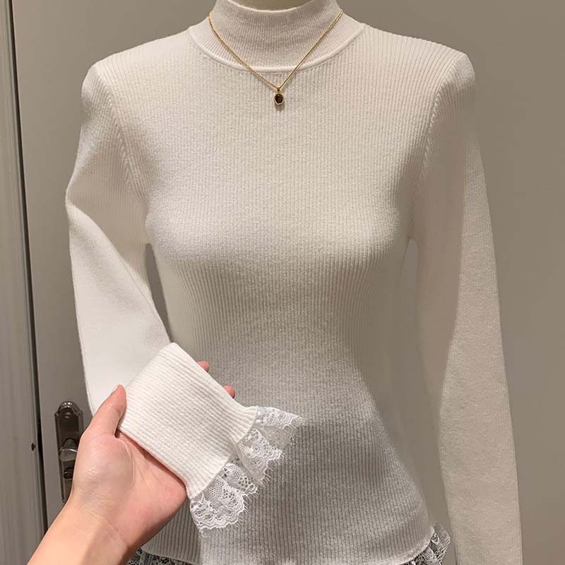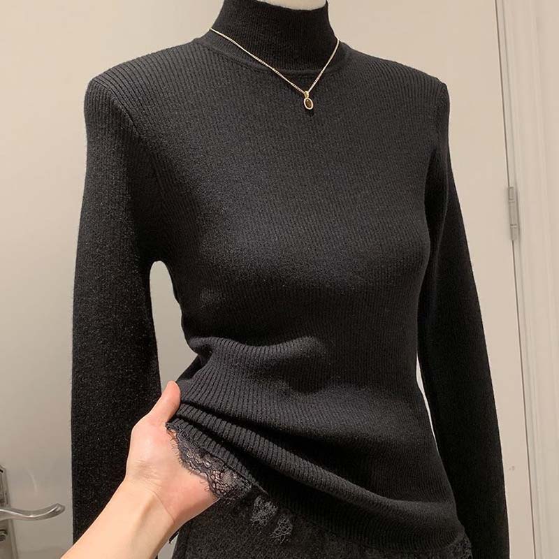 Свитер для женщин Осень Зима Утепленный Теплый Вязаный Эластичный С длинным рукавом Водолазка Топы