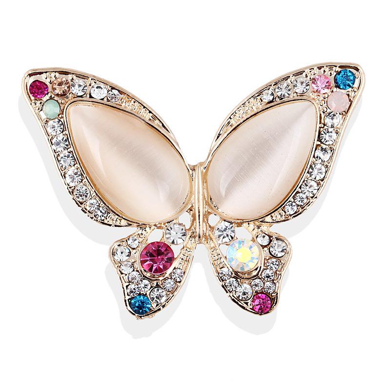 Цветная бриллиантовая брошь «Кошачий глаз» в виде бабочки, реалистичный простой дизайн с камнями, женская модная темпераментная универсальная повседневная булавка для корсажа, ювелирное изделие