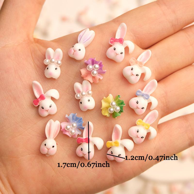 WTEMPO Набор для украшения ногтей «Милый кролик» сделай сам Пасхальные 3D аксессуары для ногтей «Длинноухий кролик» Дизайны с кроличьими головами из смолы Принадлежности для нейл-арта Праздничные украшения