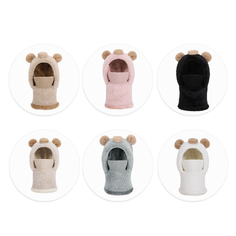 Детская шапка с интегрированным шарфом-манишкой в виде мультяшного медвежонка для мальчиков и девочек, зимняя, уличная, плюшевая, теплая, вязаная шерстяная шапка
