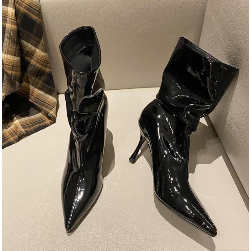Мода Уличный Стиль Тонкий Высокий Каблук Ботильоны Женские Лакированная Кожа Осень Зима Обувь на Молнии Сексуальные Банкетные Выпускные Туфли-Лодочки