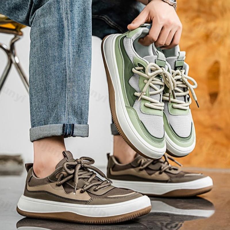 Модные мужские кроссовки на платформе 2025 Осень Новые дышащие сетчатые Нескользящая мягкая подошва Беговые кроссовки Модные винтажные на шнуровке Повседневные слипоны