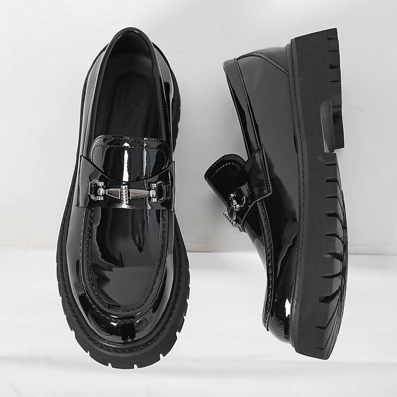 Британский стиль Мокасины с металлической пряжкой Мужские свадебные туфли на толстой подошве Новые формальные деловые удобные туфли Повседневная кожаная обувь без застежек