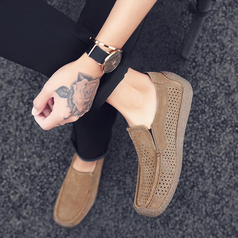 Летняя мужская повседневная обувь Офисный бренд Мужская модельная обувь Классическая легкая перфорированная кожа Дышащая низкая обувь лоферы