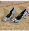 Модные женские сексуальные синие джинсовые туфли со стразами на высоком каблуке летние корейские модные босоножки с острым носком туфли-лодочки на тонком каблуке вечернее платье повседневная обувь