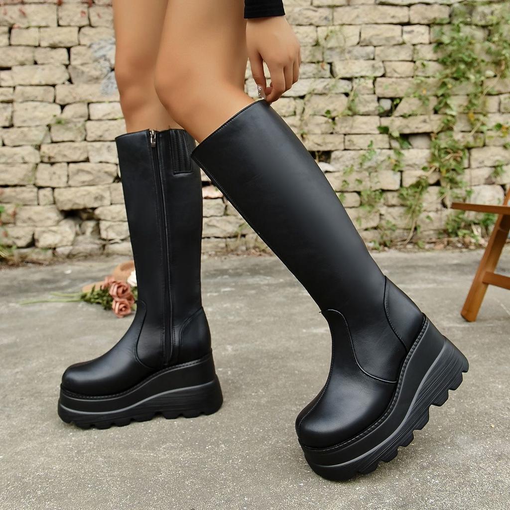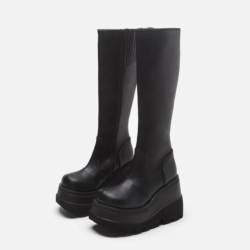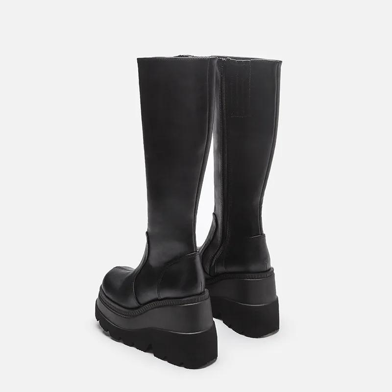 Модные женские длинные сапоги большого размера, новые сапоги-рыцари на толстой подошве и наклонном каблуке, европейские и американские модные облегающие высокие сапоги
