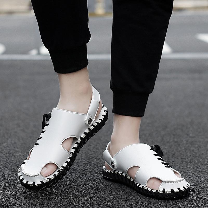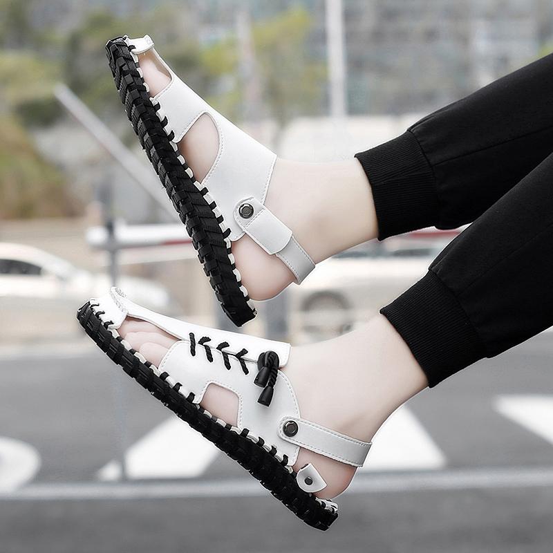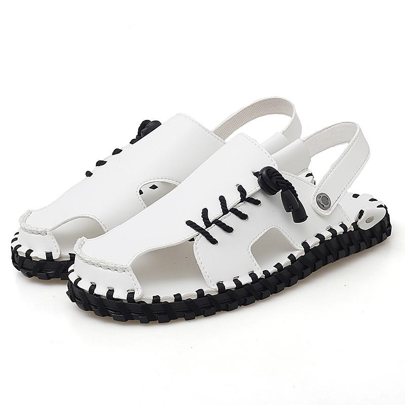 High quality handmade men's shoes Summer trendy design styles Outdoor leisure beach Walking Black white breathable sandals