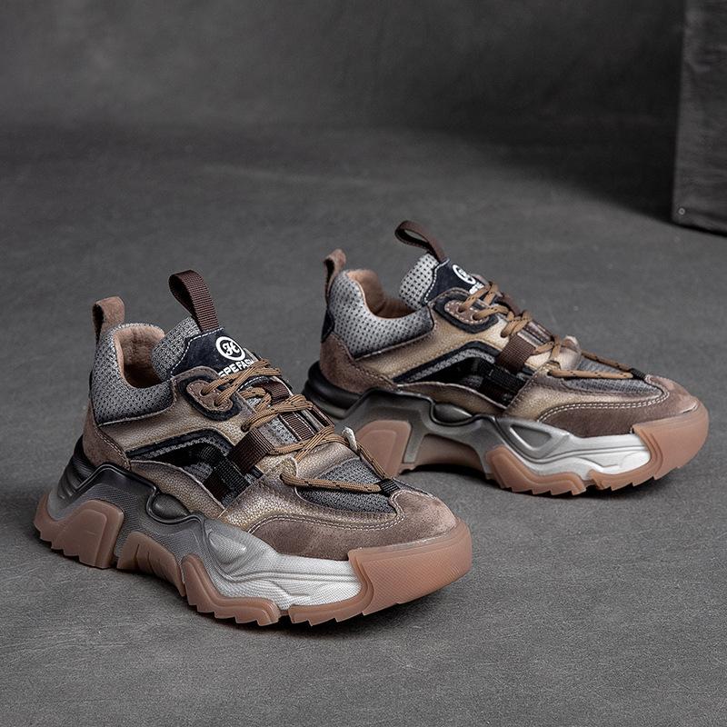 Мода 5 см Натуральная кожа Женские Леди Маффин Дышащие Повседневные Платформа Клиновидная Летняя Весенняя Осенняя Мода Толстая Подошва Кроссовки Обувь