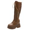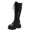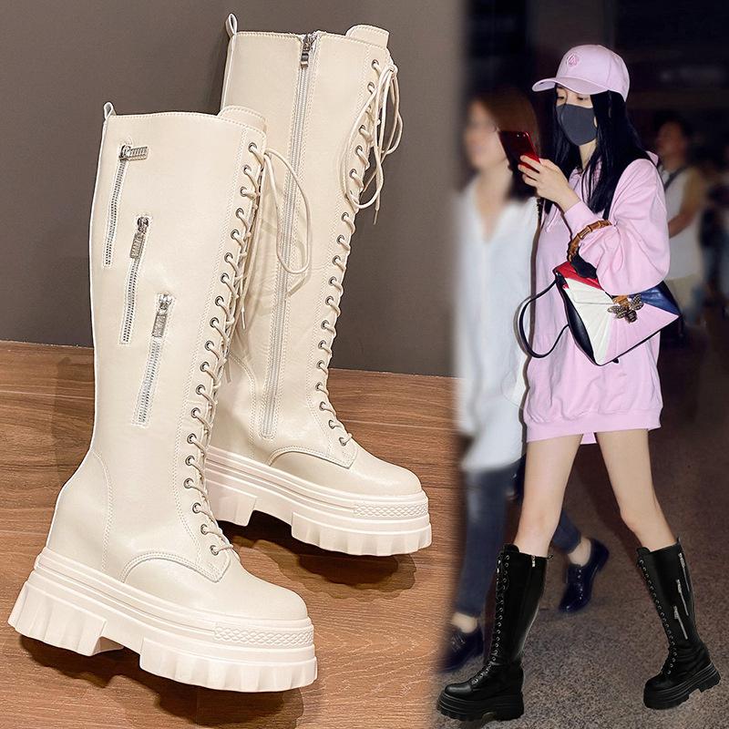 Модные осенне-зимние новые сапоги с высоким каблуком, стройнящие, женские, до колена, на ремешках, на среднем каблуке, на толстом каблуке, женские сапоги