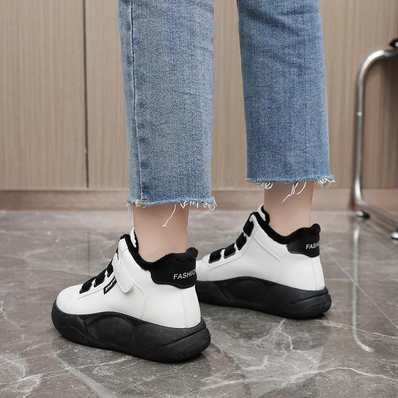 Модные женские зимние повседневные хлопковые ботинки на толстой подошве, с высоким голенищем, нескользящие, износостойкие, плюшевые, теплые, хлопковые, обувь больших размеров