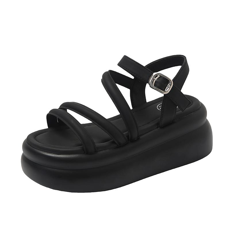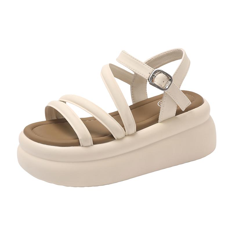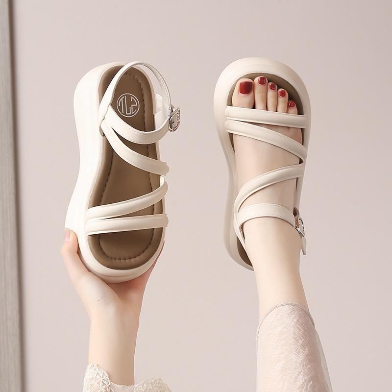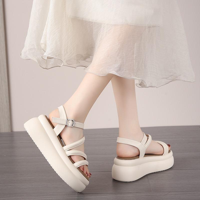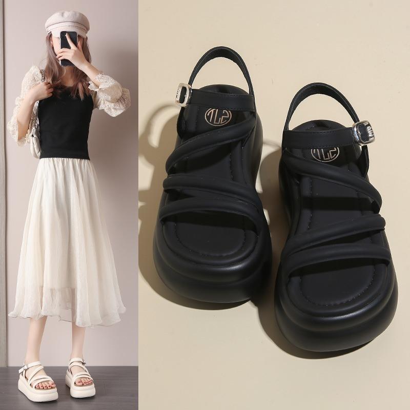 Модные римские сандалии для отдыха 7,5 см, женские, лето 2024 г., новые сандалии на высоком каблуке и платформе с клипсой, женские, нескользящие, с открытым носком, пляжная обувь