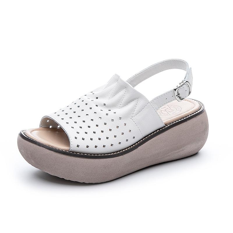 Модные летние сандалии на танкетке и платформе GKTINOO, модная обувь из натуральной кожи, женские повседневные туфли с открытым носком, мягкие и удобные сандалии для женщин
