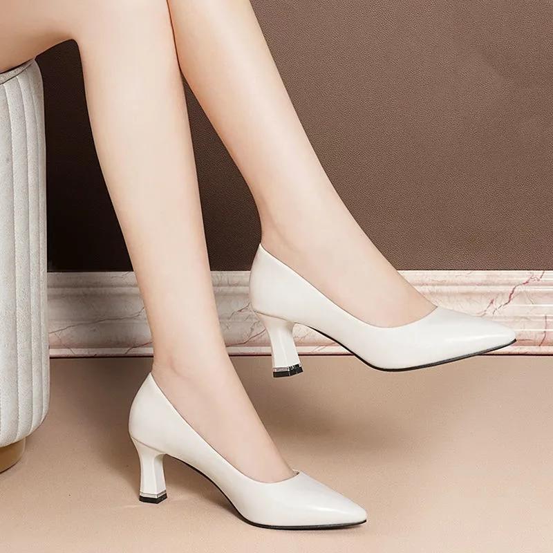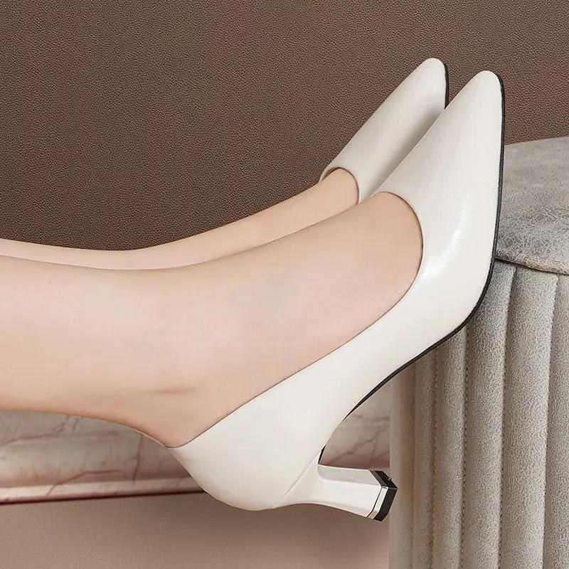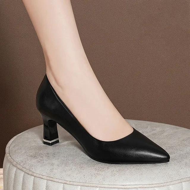Модная женская обувь на высоком каблуке 2025 Весна и Осень Новый стиль Толстый каблук Туфли-лодочки с мелким вырезом Заостренный носок Профессиональная офисная обувь