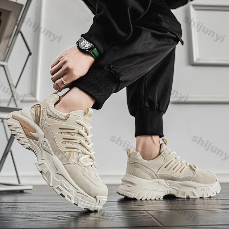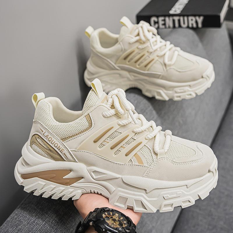Модная Мужская Обувь 2025 Весна Осень Новые Дышащие Сетчатые Нескользящие Кроссовки на Платформе Модные Комфортные Увеличивающие Рост Повседневные Беговые Кроссовки