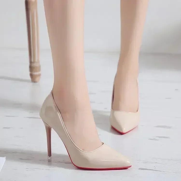 Модные туфли на высоком каблуке с красной подошвой, женские весенние новинки, остроносые туфли-лодочки на тонком высоком каблуке, сексуальные туфли с мелким вырезом больших размеров