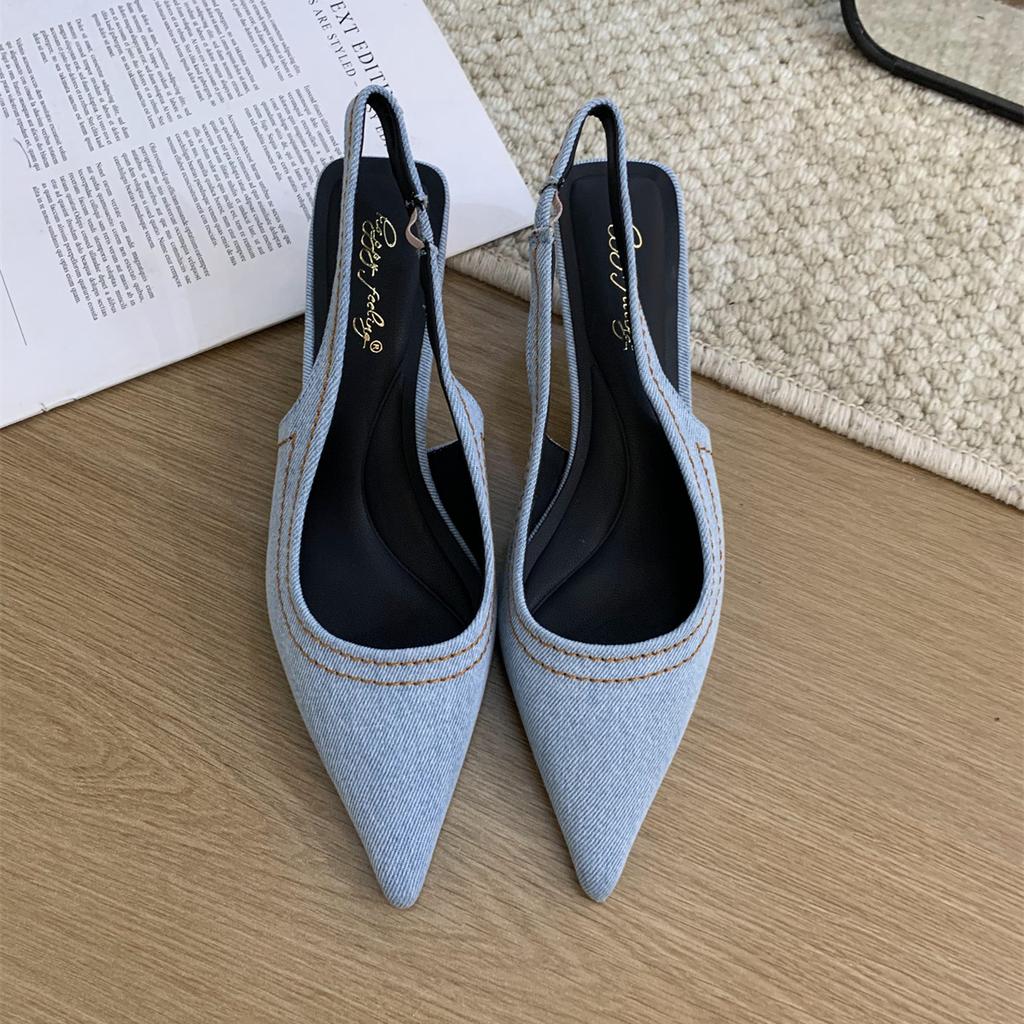Мода Bailamos Совершенно новые женские сандалии Мода Острый носок Мелкие Слипоны Женские Элегантные Туфли-слингбэки Средний каблук Туфли-лодочки Обувь Mujer