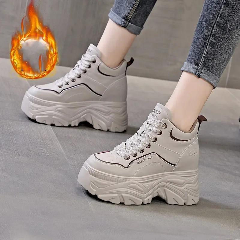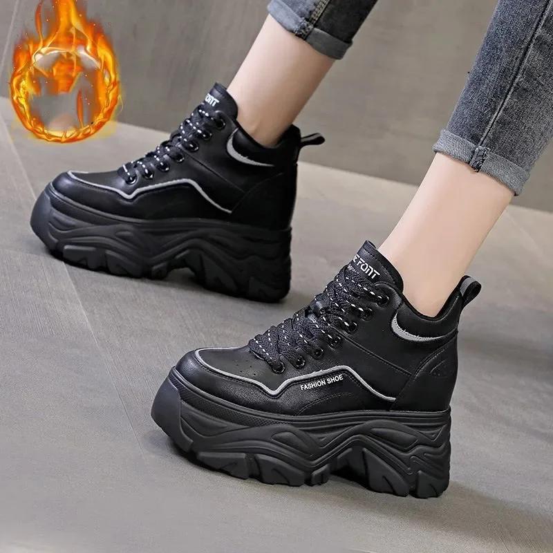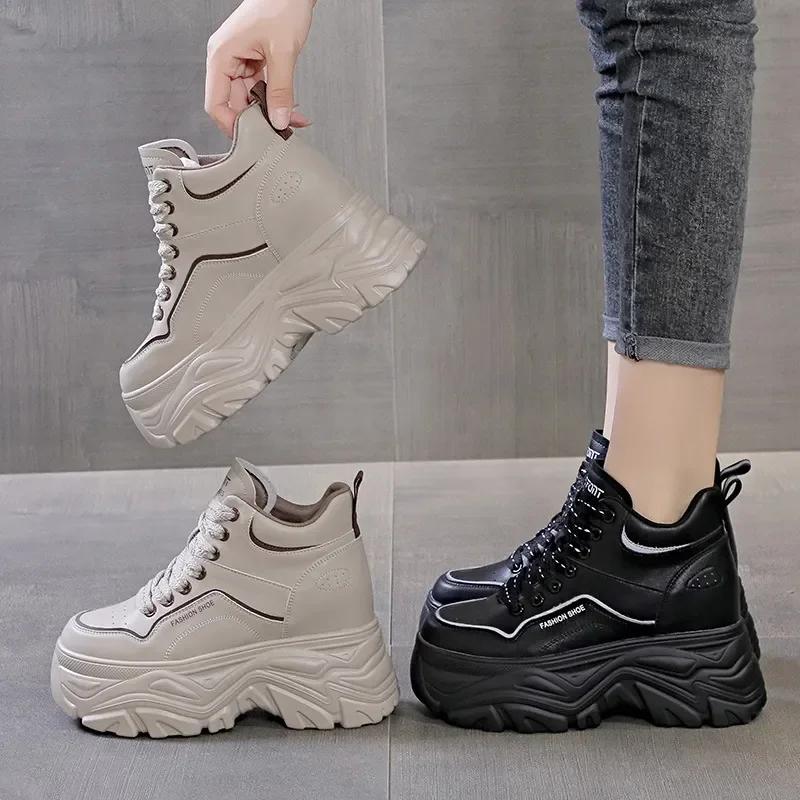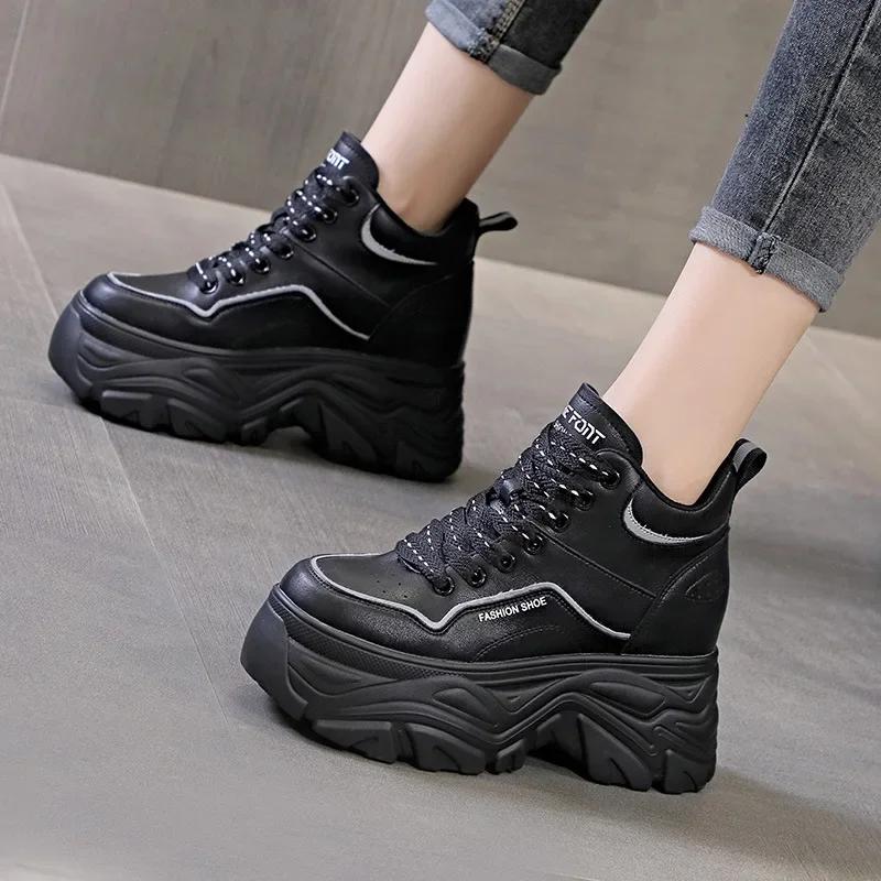 Модные женские ботильоны, осенние туфли из натуральной кожи, женские кроссовки на платформе с увеличенной высотой, 8 см, толстая подошва, танкетка, зимние ботинки