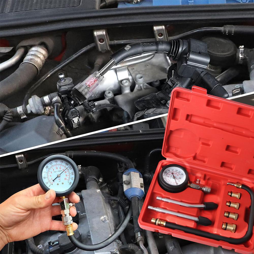 This automotive compression tester works with most car models with gasoline engines. It comes with adapters and pipes in different size to fit different models. Widely used for checking compression on engine cylinder quickly and accurately.