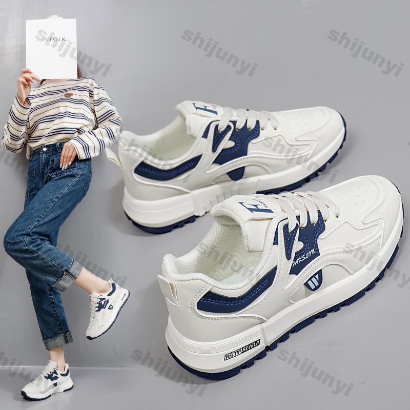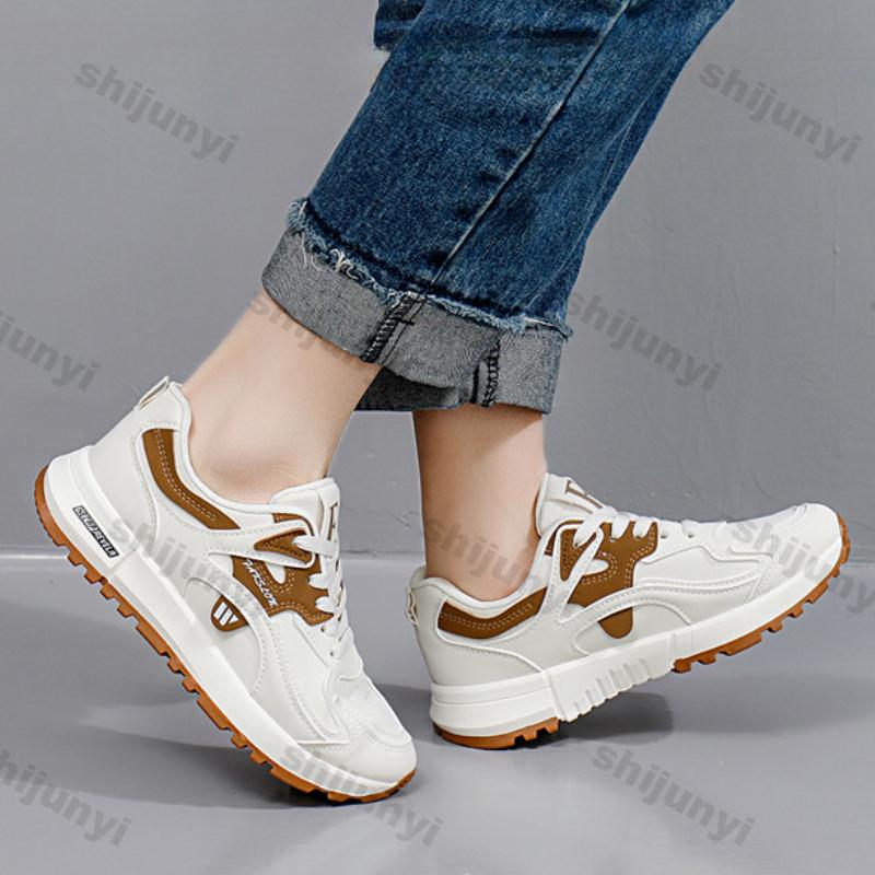 Модные кроссовки на платформе из искусственной кожи для женщин 2025 Весна Шнуровка Толстая подошва Кроссовки Женские Нескользящая обувь для бега Женская Повседневная обувь