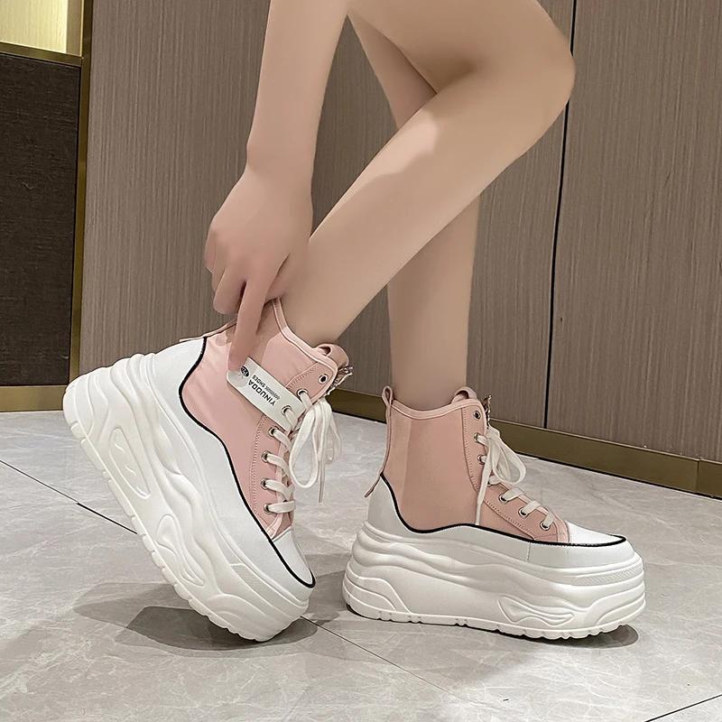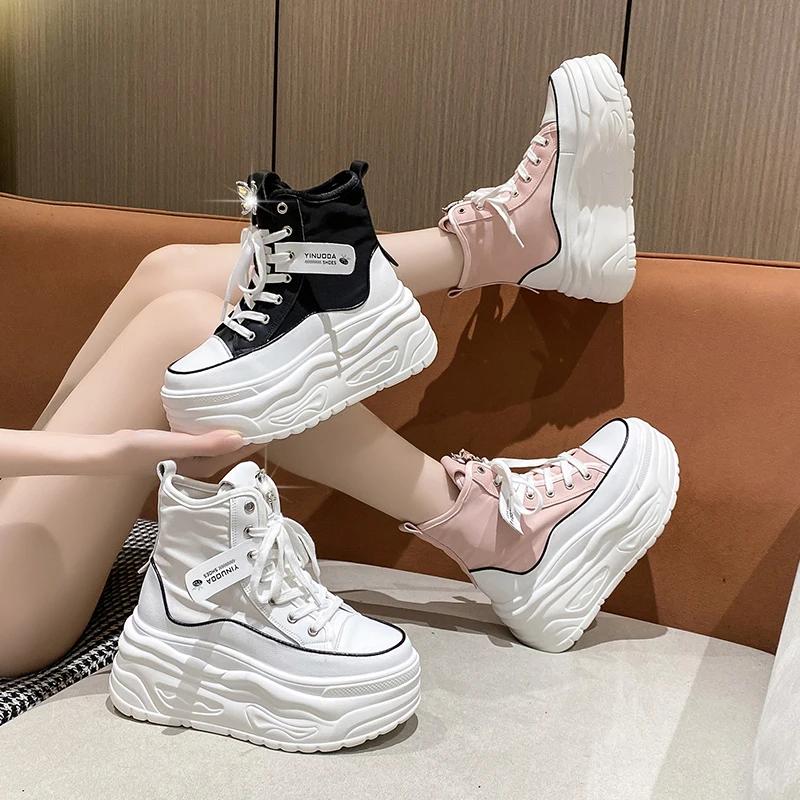Мода Мода Весна Черные Толстая Подошва Повседневные Папины Кроссовки Дышащие Массивные Кроссовки На Шнуровке 8СМ Высокая Платформа Спортивная Обувь Zapatos Mujer